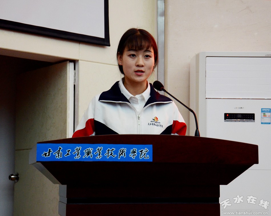 (優(yōu)秀組織獎代表 甘肅工業(yè)職業(yè)技術(shù)學(xué)院團(tuán)委副書記姜巖峰發(fā)言)