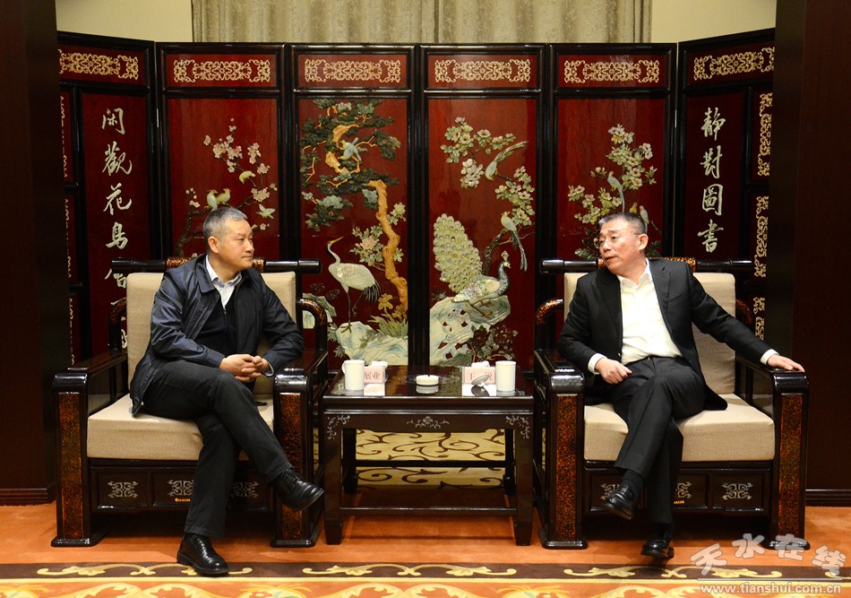 天水市委常委、市委秘書長蔣曉強,副市長張建杰,市政府秘書長逯克宗一同會見。 |