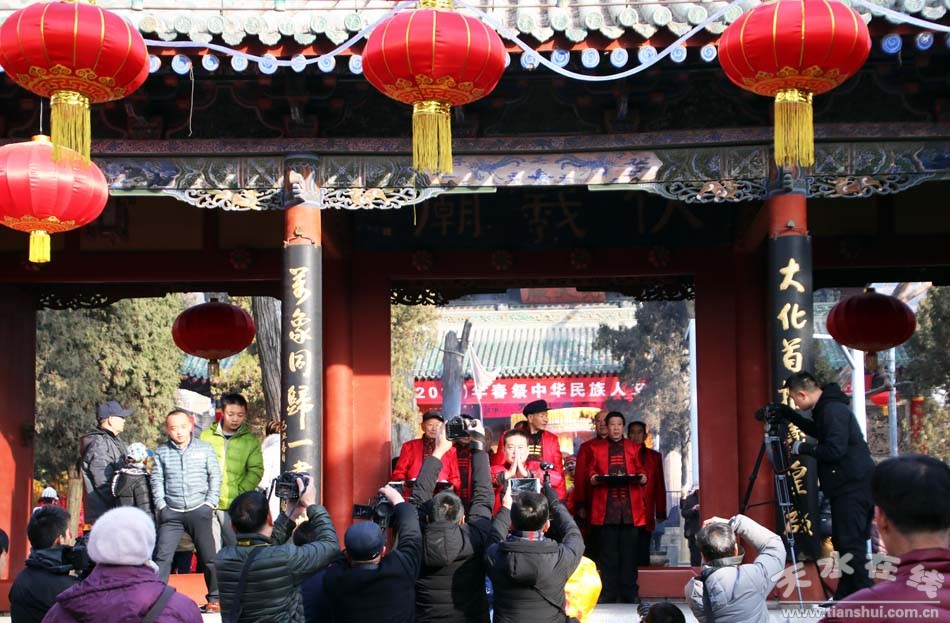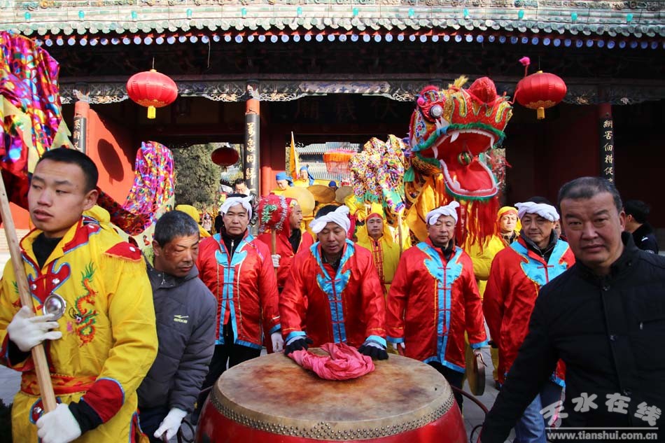 2月9(農(nóng)歷正月十三)日,吉祥中華—丁酉(2017)年天水伏羲廟春祭伏羲活動(dòng)舉行祈福納祥迎圣水儀式。取水供圣儀式結(jié)束后,在伏羲廟大門對(duì)面的戲樓前舉行了出榜文儀式。之后,方神黑爺像在浩浩蕩蕩儀仗隊(duì)伍的“護(hù)駕”下“巡游”伏羲城。