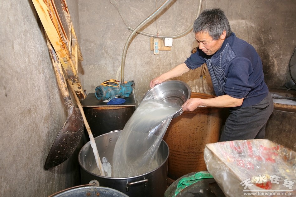 漿水豆腐以營養(yǎng)價值高、富含氨基酸、蛋白質和十余種礦物元素,被人們冠有“植物肉”的美譽。尤其是天水市麥積區(qū)石佛鎮(zhèn)的漿水豆腐,制作時點鹵的原料用的是農家做的漿水,不含工業(yè)化學凝固劑,做出的豆腐原汁原味,清香可口,深受人們的喜愛。聽說磨豆腐多在下午開工,晚上制成,2月24日下午,天水在線走進麥積區(qū)石佛鎮(zhèn)三陽村,去探尋廚房里的美味。