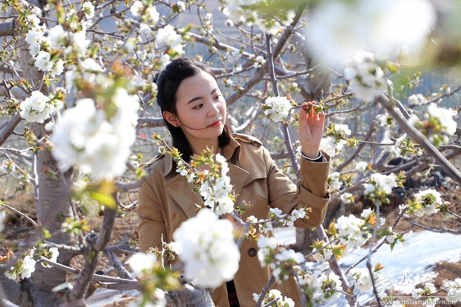 天水在線攝影報道:煙鋪櫻桃花開朵朵 美不勝收