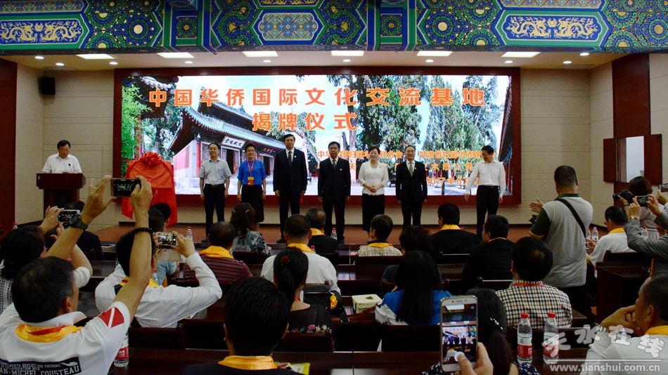 揭牌儀式上,樊向勤宣讀了中國僑聯(lián)關(guān)于天水伏羲廟被認(rèn)證為“中國華僑國際文化交流基地”的批復(fù);康曉萍、黃選平為天水伏羲廟“中國華僑國際文化交流基地”揭牌!爸袊A僑國際文化交流基地”是中國僑聯(lián)以“僑與中國夢”為主題,以中華文化為核心,以民族文化、地域文化為特色,以華僑文化為紐帶建設(shè)的交流平臺。