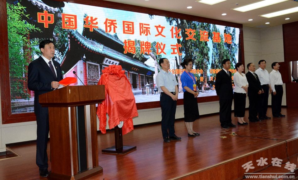 6月22日,“中國華僑國際文化交流基地”揭牌儀式在天水伏羲廟舉行。中國僑聯(lián)副主席康曉萍,甘肅省政協(xié)副主席黃選平,省僑聯(lián)主席樊向勤,省僑聯(lián)副主席、秘書長蘆小燕,天水市委常委、常務(wù)副市長趙衛(wèi)東,市人大常委會副主任蒲朝暉,市政協(xié)副主席郭明興出席揭牌儀式。來自全球15個國家的華僑華人代表及港澳嘉賓近100人參加揭牌儀式。