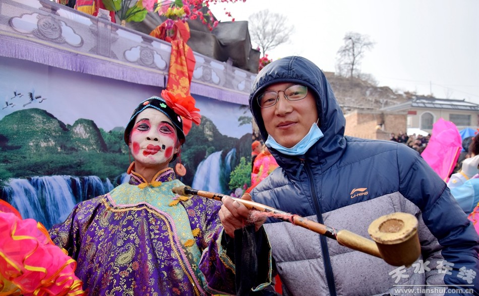 2月18日,農(nóng)歷正月十四。四面八方的人,有開(kāi)車來(lái)的遠(yuǎn)客,有步行來(lái)的村民,有提小板凳的老人,有騎在父親肩頭的孩童,昨夜的一場(chǎng)大雪根本阻止不了人們前往秦安縣蓮花鎮(zhèn)馮溝村“迎神”的步伐。