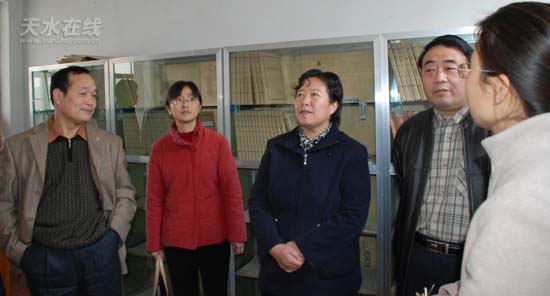 11月22日,天水市副市長蕭菡帶領(lǐng)市檔案局局長汪開云及相關(guān)科室負責(zé)人,在武山副縣長宋玉香及相關(guān)部門負責(zé)人的陪同下,就武山縣檔案地方志工作進行了調(diào)研,并對2007年檔案工作目標(biāo)任務(wù)完成情況進行了考核。