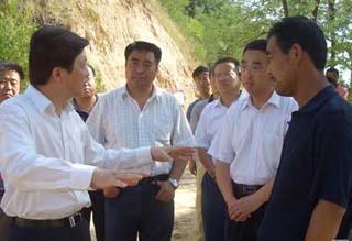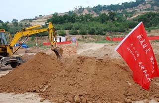 ( 樺林溝流域綜合治理工程萬畝梯田點建設一角)