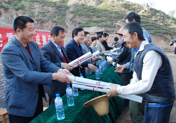 10月8日下午,武山縣榆盤鄉(xiāng)魯班村宋家山組彩旗飄揚(yáng),鑼鼓喧天,禮炮齊鳴,每個(gè)人臉上都綻放著幸福的笑容,到處洋溢著喜慶的氣氛。武山縣在這里隆重舉行了第一個(gè)災(zāi)后重建異地搬遷入住儀式。
