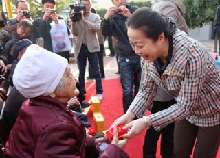 座談慰問心覺暖,衣物相贈(zèng)可御寒;