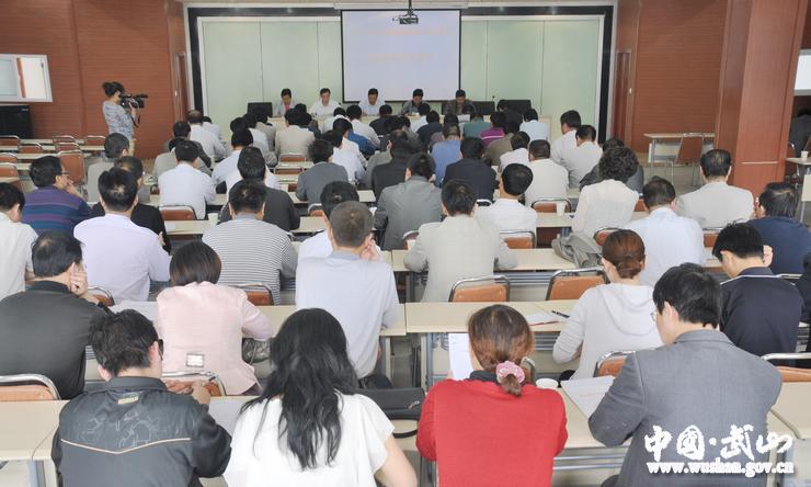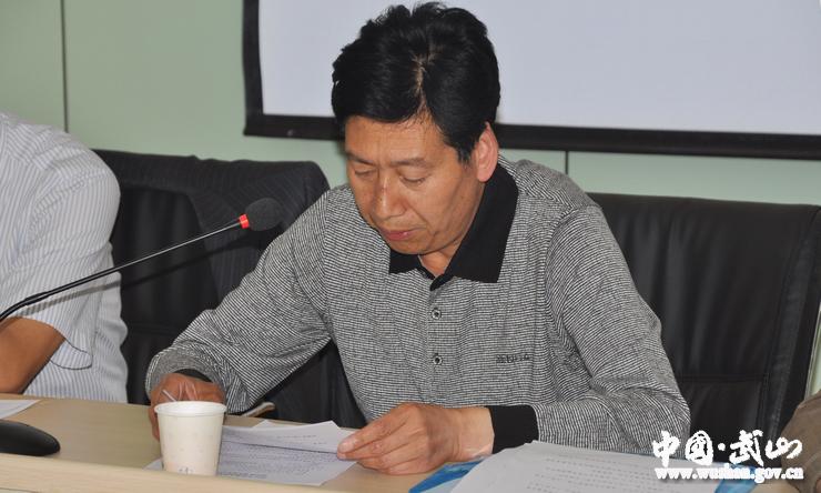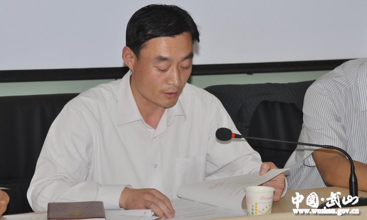 縣教體局局長(zhǎng)石尚榮宣讀《武山縣考區(qū)及考點(diǎn)組織機(jī)構(gòu)人員名單的通知》