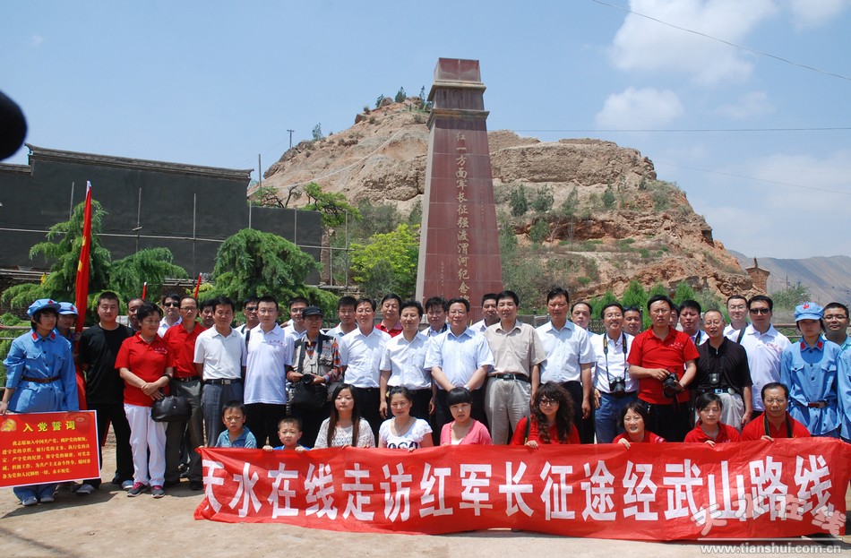 6月18日,在慶祝中國(guó)共產(chǎn)黨成立九十周年之際,天水在線走訪紅軍長(zhǎng)征途經(jīng)武山路線活動(dòng)采訪團(tuán),先后走進(jìn)費(fèi)家山毛澤東長(zhǎng)征舊居、武山縣蘇維埃政府舊址、紅一方面軍長(zhǎng)征強(qiáng)渡渭河紀(jì)念碑處開(kāi)展緬懷革命先烈、重走紅軍長(zhǎng)征路、重溫入黨誓詞等活動(dòng)。