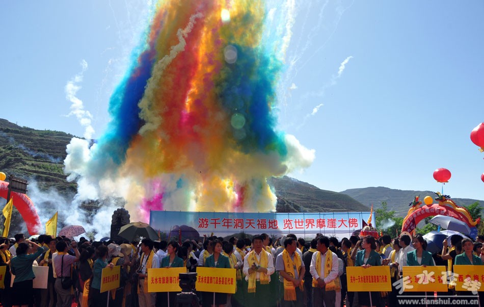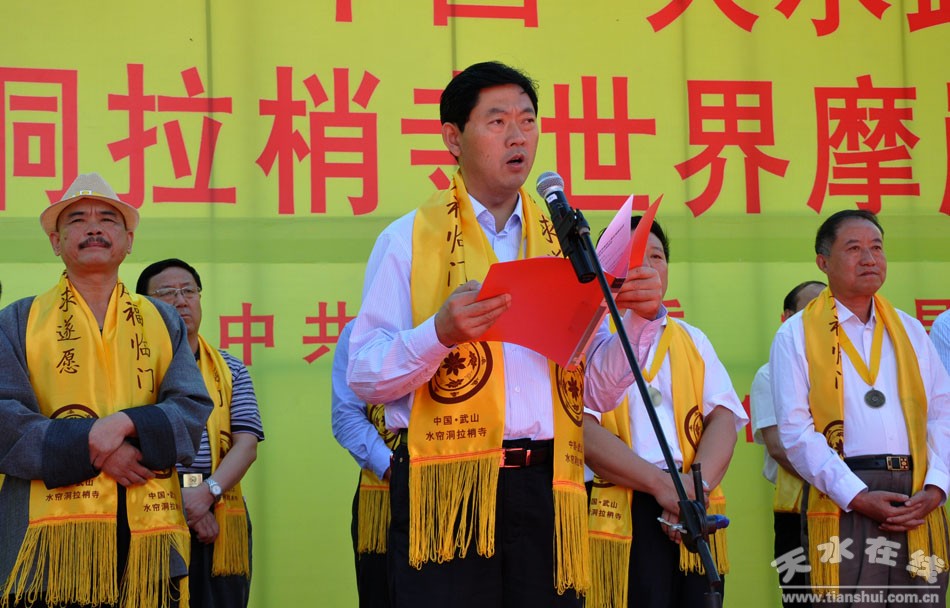 今天,“水簾洞拉梢寺世界摩崖大佛祈福游活動(dòng)”隆重啟動(dòng)了。首先,我代表中共天水市委、市人大、市政府、市政協(xié),向參加今天活動(dòng)的各位來(lái)賓表示熱烈的歡迎!向祈福游活動(dòng)的隆重舉辦表示熱烈的祝賀!