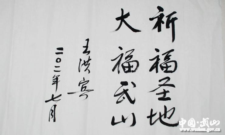 在參觀武山縣建黨90周年書畫展后,王洪賓即興題詞“祈福圣地,大福武山”,徐世英題詞“祝愿武山更輝煌”。