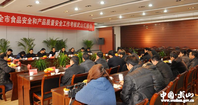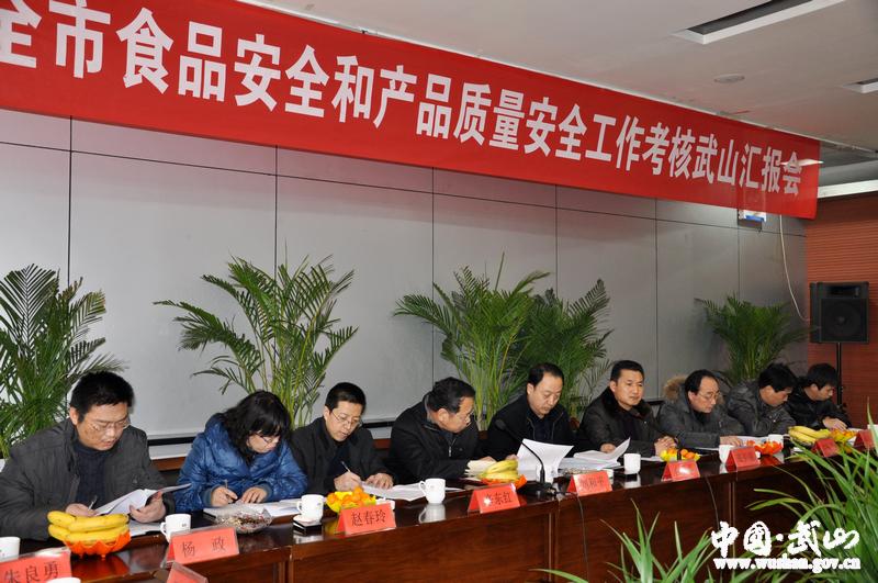 。ǜ笨h長張慶元、甘志國分別就武山縣2011年推進質(zhì)量振興暨產(chǎn)品質(zhì)量安全監(jiān)管工作目標責任完成情況和武山縣2011年度食品安全工作向考核組作了詳細匯報。)