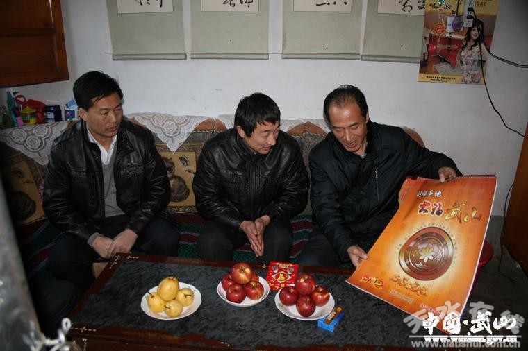 在洛門鎮(zhèn)蓼陽村,當(dāng)陳鴻帶著慰問組一行,抬著面粉、大米,走進(jìn)道德模范汪桂林家時(shí),汪桂林全家熱情地把大家迎進(jìn)了房子,陳鴻給汪桂林送上了慰問金和縣上印制的大福武山掛歷。通過掛歷向汪桂林介紹了我縣“11253”區(qū)域發(fā)展戰(zhàn)略以及縣上發(fā)生的巨大變化。詳細(xì)詢問了汪桂林家中的經(jīng)濟(jì)收入和生活狀況,高度評(píng)價(jià)了汪桂林勇救落水兒童的感人事跡后,汪桂林說,這是一個(gè)公民應(yīng)盡的義務(wù),縣上領(lǐng)導(dǎo)冒著大雪來看望我,我很感激。