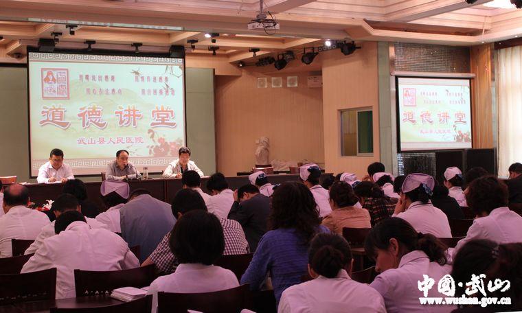 近日,武山縣人民醫(yī)院“道德講堂”在縣醫(yī)院門診樓三樓會(huì)議室開講?h醫(yī)院黨支部書記趙來(lái)緒主持,全院各科室主任、護(hù)士長(zhǎng)及全體黨員120余人參加。