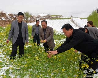 受寒潮天氣影響,4月25日凌晨,武山縣15個(gè)鄉(xiāng)鎮(zhèn)出現(xiàn)不同程度降雪降溫天氣,對(duì)全縣農(nóng)業(yè)生產(chǎn)造成較大影響,致使部分農(nóng)作物受災(zāi)。縣委書記索鴻賓,縣委副書記、縣長(zhǎng)馬勤學(xué)對(duì)防災(zāi)減災(zāi)工作高度重視,提出明確要求。25日一早,縣委副書記武建成主持召開緊急會(huì)議,專題安排部署防災(zāi)減災(zāi)工作?h人大常委會(huì)副主任李亞平,副縣長(zhǎng)李菊霞,縣政協(xié)副主席駱育喜等縣四大組織領(lǐng)導(dǎo)及縣委辦、政府辦、民政、農(nóng)業(yè)、林業(yè)、畜牧、蔬菜、氣象等部門負(fù)責(zé)人參加會(huì)議。