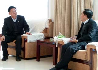 (縣長馬中奇與國電甘肅電力有限公司副總經(jīng)理、黨組成員李太祥親切交談)