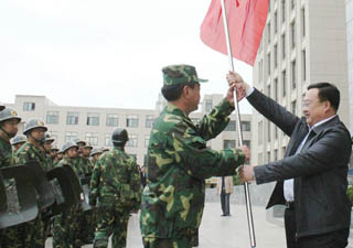 縣委副書(shū)記、縣長(zhǎng)馬中奇在啟訓(xùn)儀式作了講話。他指出,應(yīng)急隊(duì)的成立填補(bǔ)了張家川縣處置突發(fā)事件隊(duì)伍建設(shè)的空白,也標(biāo)志著全縣應(yīng)急隊(duì)伍建設(shè)邁上了一個(gè)新的臺(tái)階。為此,他向全體隊(duì)員提出了三點(diǎn)要求。一要統(tǒng)一思想,高度認(rèn)識(shí)組建處置突發(fā)事件應(yīng)急隊(duì)的重大意義。建立一支配置合理、訓(xùn)練有素、管理規(guī)范、戰(zhàn)斗力強(qiáng)的處置突發(fā)事件應(yīng)急隊(duì)伍,對(duì)有效處置各類自然災(zāi)害、事故災(zāi)難、群體性事件,確保人民群眾生命財(cái)產(chǎn)安全,確保維護(hù)全縣大局穩(wěn)定具有十分重要的作用和重大意義。二要明確職責(zé),切實(shí)履行處置突發(fā)事件的重要使命。全體隊(duì)員一定要樹(shù)立大局意識(shí),聽(tīng)從召喚,忠于使命,履行職責(zé),堅(jiān)決服從命令,特別是要做到迅速執(zhí)行命令,在第一時(shí)間到達(dá)事發(fā)現(xiàn)場(chǎng),在縣突發(fā)公共事件應(yīng)急管理委員會(huì)的統(tǒng)一領(lǐng)導(dǎo)下,積極妥善處置影響社會(huì)穩(wěn)定的聚眾滋事、堵塞公共交通、非法搶占公共場(chǎng)所等嚴(yán)重?cái)_亂社會(huì)秩序和危害公共安全的各類群體性事件,積極參與重大安全生產(chǎn)事故、公共衛(wèi)生突發(fā)事件、重特大交通安全事故、重大火災(zāi)事故、教育安全事故、重大自然災(zāi)害等造成重大人員傷亡或重大經(jīng)濟(jì)損失的各類突發(fā)事件的救援、處置工作。三要嚴(yán)格管訓(xùn),努力提高處置各類突發(fā)事件的能力。全縣各級(jí)黨政組織務(wù)必要高度重視,大力支持應(yīng)急隊(duì)各項(xiàng)工作,各鄉(xiāng)鎮(zhèn)和抽調(diào)應(yīng)急隊(duì)隊(duì)員的單位要顧全大局,堅(jiān)決執(zhí)行縣委、縣政府決定,支持應(yīng)急隊(duì)工作,加強(qiáng)隊(duì)員管理,正確處理本職工作與日常訓(xùn)練、執(zhí)行處突任務(wù)的關(guān)系。縣鄉(xiāng)應(yīng)急隊(duì)一定要嚴(yán)格隊(duì)伍的教育、訓(xùn)練和管理,縣應(yīng)急隊(duì)隊(duì)長(zhǎng)、副隊(duì)長(zhǎng)要切實(shí)發(fā)揮職責(zé),擔(dān)負(fù)起應(yīng)急隊(duì)的日常管理任務(wù),全體應(yīng)急隊(duì)員要嚴(yán)格遵守各項(xiàng)工作紀(jì)律,刻苦訓(xùn)練,堅(jiān)決服從命令,認(rèn)真履行職責(zé)。縣應(yīng)急委員會(huì)辦公室要制定具體事件處置預(yù)案。要針對(duì)不同事件特點(diǎn),充分吸收近年來(lái)應(yīng)對(duì)突發(fā)事件的經(jīng)驗(yàn),制定不同事件的應(yīng)急訓(xùn)練內(nèi)容與處置預(yù)案,增強(qiáng)應(yīng)急隊(duì)訓(xùn)練的針對(duì)性。要按照“緊貼實(shí)際、務(wù)求實(shí)用、立足實(shí)戰(zhàn)”的原則,堅(jiān)持基礎(chǔ)訓(xùn)練與實(shí)戰(zhàn)訓(xùn)練相結(jié)合,突出實(shí)戰(zhàn)訓(xùn)練,切實(shí)提高處置突發(fā)事件的能力。