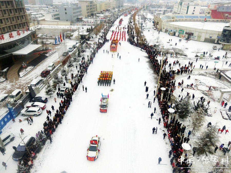 高臺、高蹺、舞獅、彩車、武術(shù)、秧歌等傳統(tǒng)社火節(jié)目競相表演,所到之處歡歌笑語,掌聲不斷,喝彩不斷,精彩地表演把紅紅火火的年味推向了一個新的高潮,為廣大群眾送上了新春的美好祝福,也向回漢群眾傳播著中華民族最悠久的民間傳統(tǒng)文化和現(xiàn)代文明,無不流露著群眾對中華民族偉大復(fù)興的中國夢的美好向往和全面建成小康社會的自信。社火表演提振了張家川34萬回漢人民脫貧攻堅的精氣神。